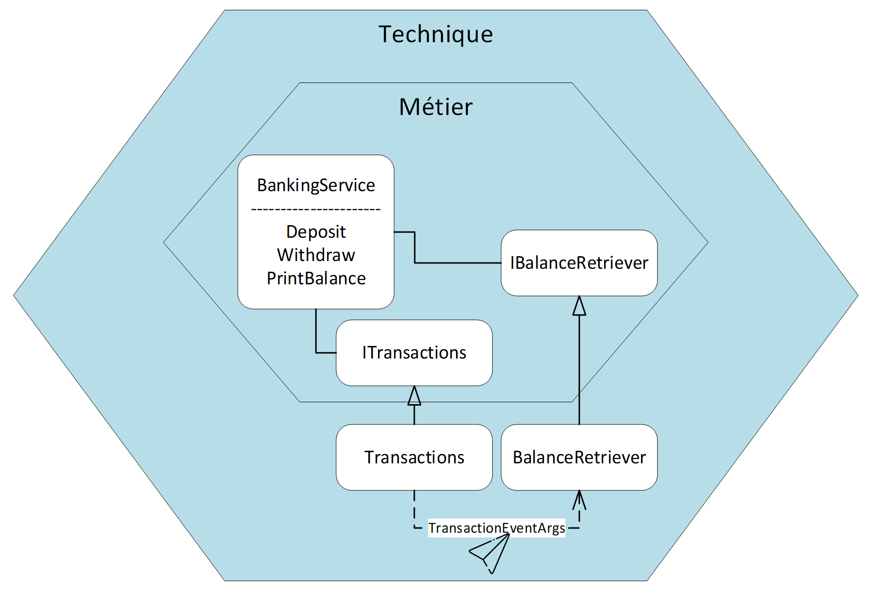 Pour information, j’ai laissé la classe « TransactionEventArgs », qui encapsule la transaction ajoutée, au niveau du projet « Banking.Application » car je considère que c’est technique. D’ailleurs les contrats de mon domaine n’ont pas changé.