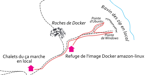 Bref, ça marche sur mon environnement local : j’étais arrivé sans encombre au camp de base. Mais, comme parfois, c’est le passage dans l’environnement de prod qui va se révéler le plus long. Surtout si celui-ci est dans le cloud.