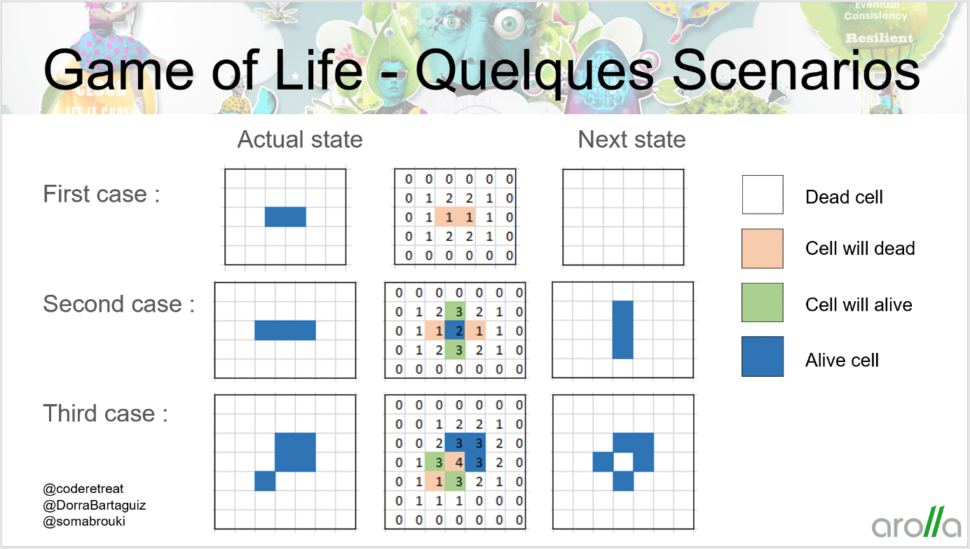 Les participants peuvent même aller sur le site https://playgameoflife.com  pour tester des différents cas.
