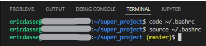 Si tu utilises VS Code en conjonction avec WSL2, tu peux également ouvrir ton terminal WSL2, te rendre dans le répertoire super_project et taper code .
