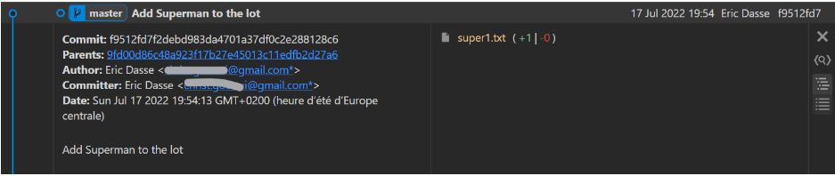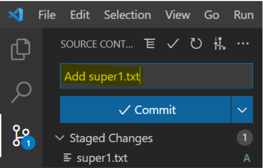 Maintenant, rendons-nous dans l’interface de contrôle de versions de tout à l’heure en cliquant dessus ou par un simple Ctrl + Shift + G, et cliquons sur super1.txt