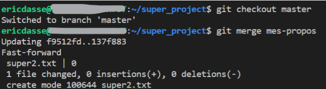 Et tadam ! Maintenant, le terminal nous présente la branche en cours 😉