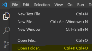 Maintenant, ouvrons ce projet dans VS Code. Pour cela, commence par ouvrir VS Code, rends-toi dans File > Open Folder et recherche super_project dans ton explorateur.