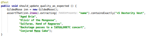 assertThat(inn.items).extracting("quality").containsExactly(