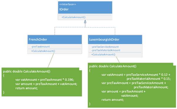 Ainsi, on va avoir la classe OrderPrice qui contient la méthode CalculateAmount().
