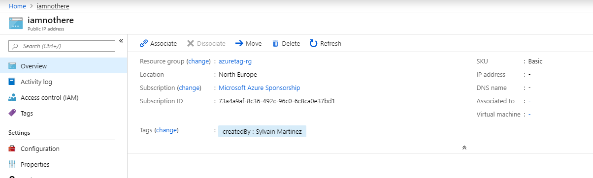 New-AzPublicIpAddress -Name "iamnothere" -ResourceGroupName azuretag-rg -Location northeurope -AllocationMethod Dynamic